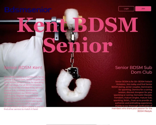 | Summary: Kent Senior BDSM💖🔥 Kent BDSM Senior for Seniors and Mature BDSM Sub and Dom members for Spanking sessions, bondage, discipline, domination, sadism, masochism and where you can Meet seniors Sub and Dom, senior couples and other BDSM Seniors online for spanking, Fetish, bondage in Maidstone, Gillingham, Dartford, Chatham, Ashford, Rochester, Margate, Royal, Tunbridge Wells, Gravesend, Canterbury, Folkestone,...For all BDSM kinksters over 50. Find like-minded Kinky seniors, mistress, dominatrix, femdom and join our BDSM Senior community. Register free and start meeting Senior BDSM kinksters today. The BDSM Senior is a BDSM dating site dedicated to seniors! What ever your fantasy, fetisch or BDSM desire is you wil find other seniors to match it here! BDSM senior Kent, Senior BDSM dating, senior couple UK, mature singles, spanking, fetish, online BDSM dating, BDSM dating site, Senior BDSM singles, loves BDSM, kinky dating, find BDSM online, Kinky companions, meet new Kinksters, BDSM dating App, find a BDSM partner, Dominatrix, Domina, BDSM dating service, find a BDSM date, BDSM fantasy, Connect with Kinksters, Dom and Sub dating, BDSM over 50's, BDSM dating50+, BDSM for silver surfers, Dominatrix, Domina, Femdom, Senior BDSM partners, Senior BDSM Club, Caning, Spanking, Fetish for Seniors in Senior BDSM now in Dover, Ramsgate, Tonbridge, Herne Bay, Whitstable, Deal, Sevenoaks, Northfleet, Ditton, Broadstairs,...Best Senior BDSM in Kent!! | 5.0 |